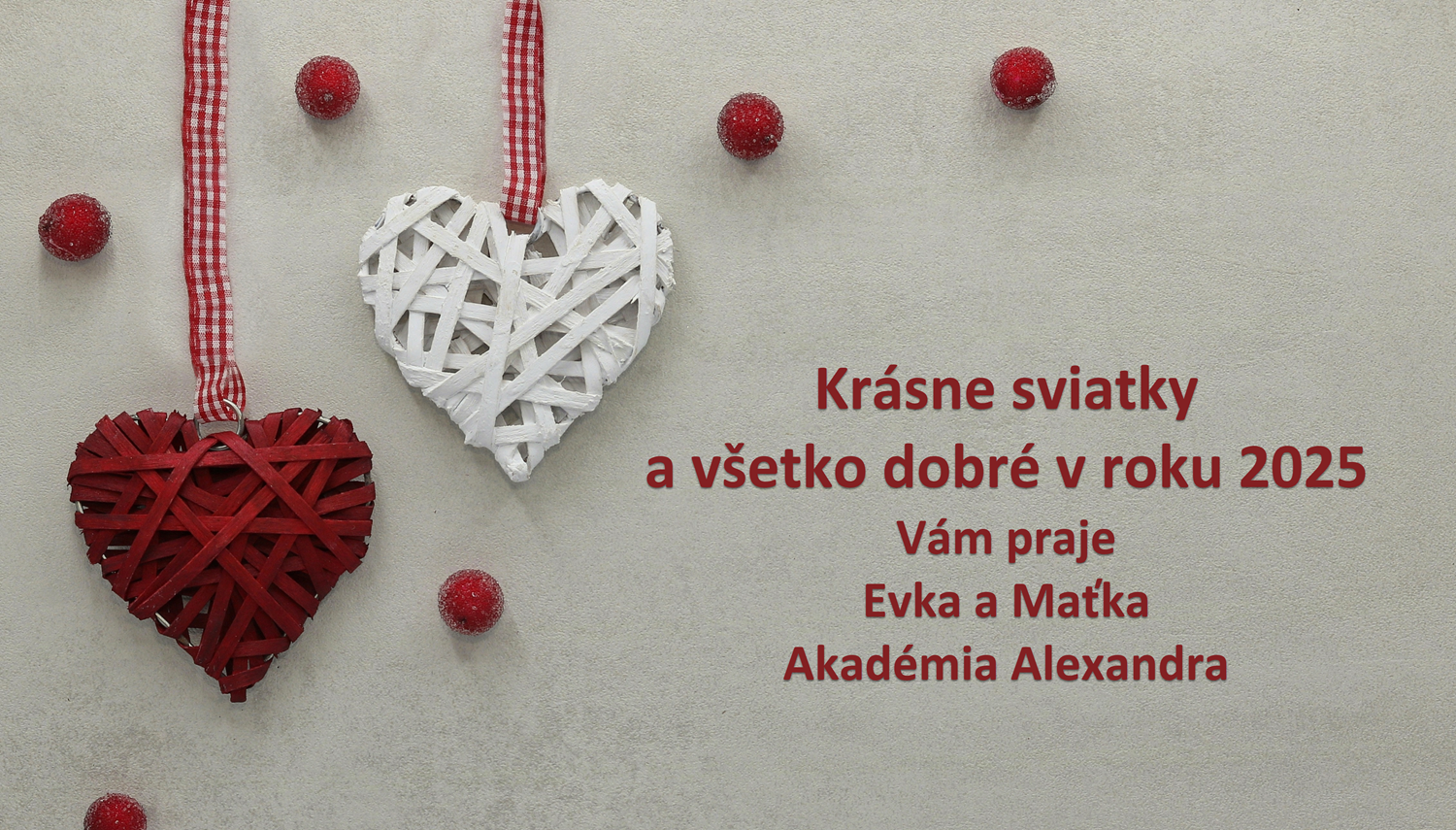Novinky Naše prianie 16. decembra 2024 /Posted byMartina Chalachánová Share Post Facebook Linkedin Whatsapp Pripravte sa na advent Všetko najlepšie ku Dňu učiteľ...